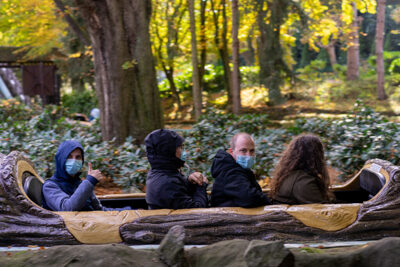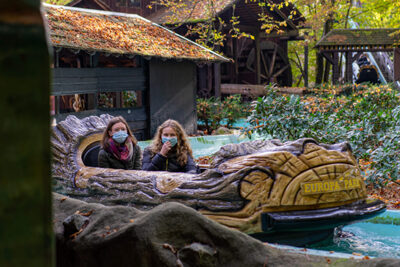 Währenddessen flog die andere Gruppe im Voletarium um die Welt. Je nachdem wie man die Flugsteuerung hielt, veränderte sich dann auch die Sitzposition. Und auch an anderen Effekten wurde nicht gespart – vom Sitzrütteln beim Vulkanausbruch bis hin zu Wasserspritzern und Vulkanrauch. So düste die Truppe viereinhalb Minuten lang über norwegische Fjorde, das schöne Matterhorn und viele weitere Landschaften bis nach Paris und wurde dann mit einem fulminanten Feuerwerk im Europapark wieder willkommen geheissen.